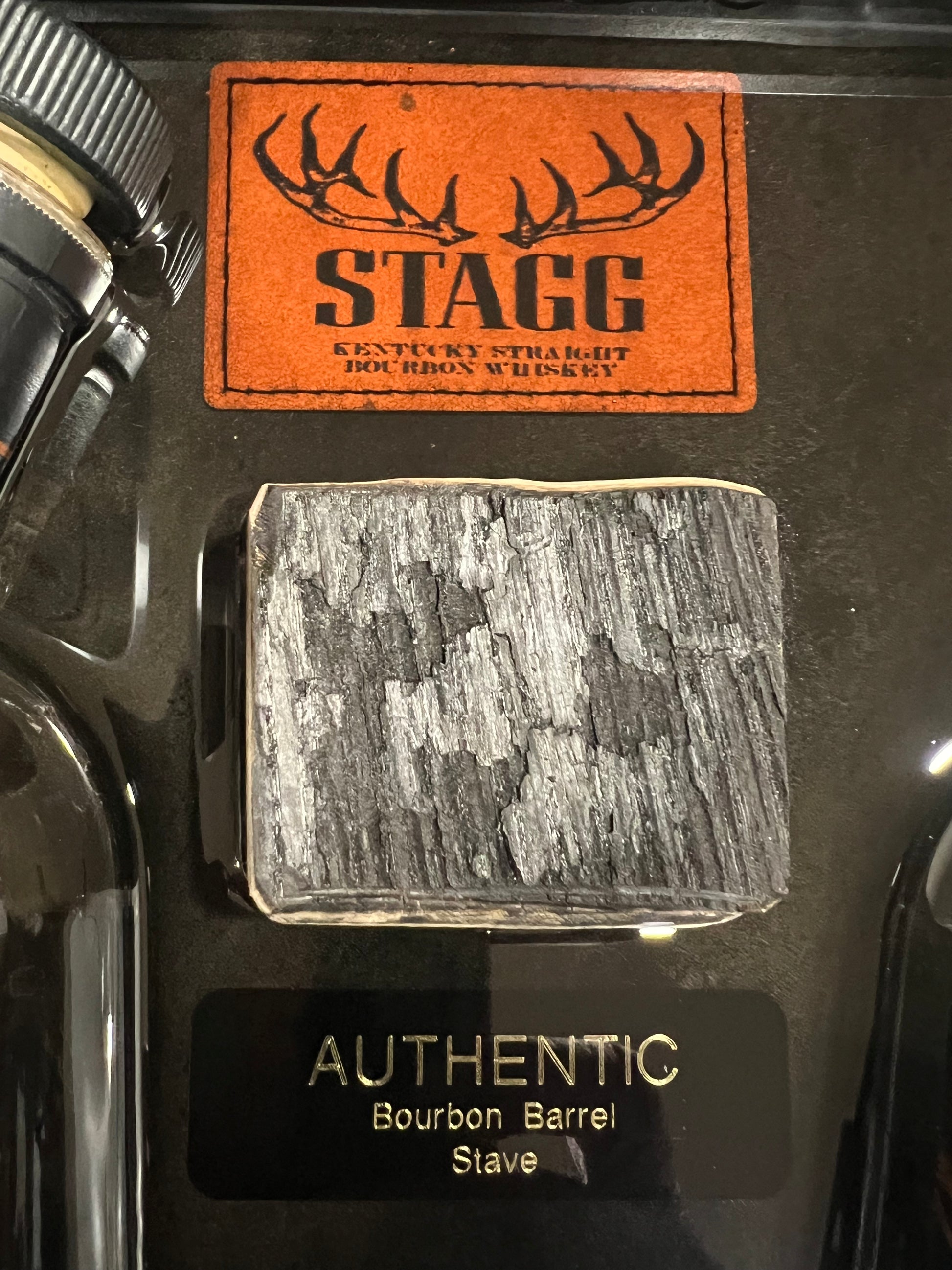 Includes: authentic bourbon barrel “charred” stave & leather Stagg name plate.